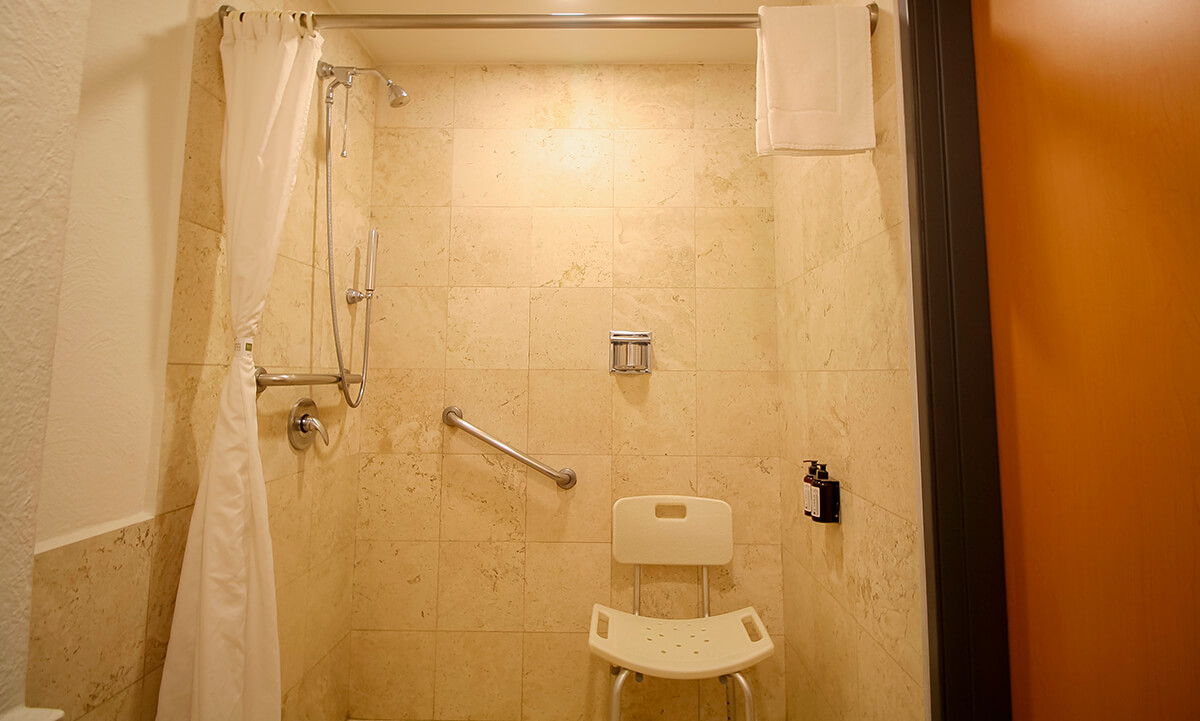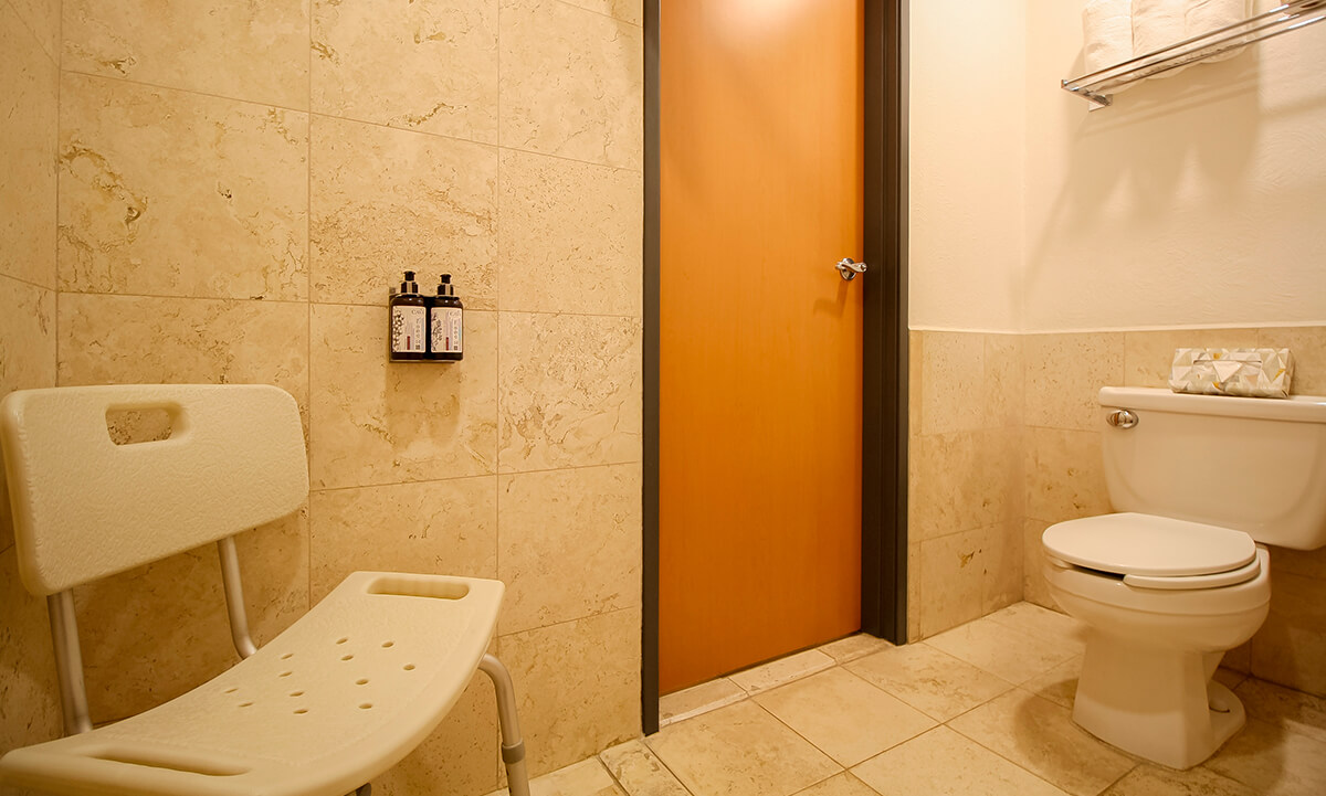 ** Contamos con una habitación con baño adaptado que incluye barras de apoyo, regadera con extensión y espacios amplios para facilitar el movimiento.